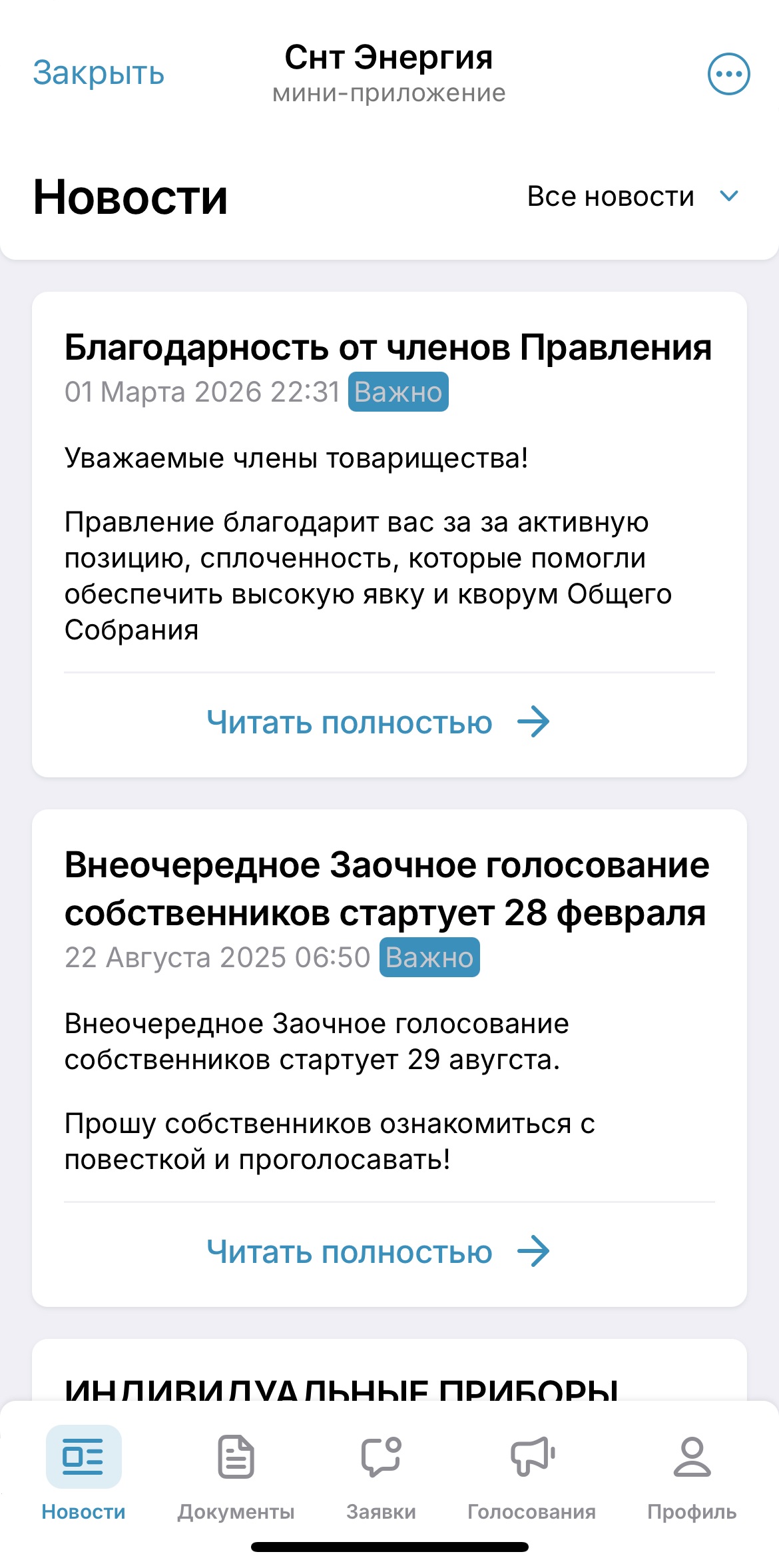 Цифровое СНТ — Единственная система, объединяющая сайт, мобильное приложение в Telegram, MAX, Android и iOS